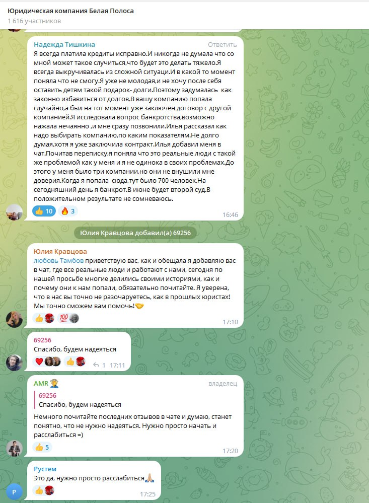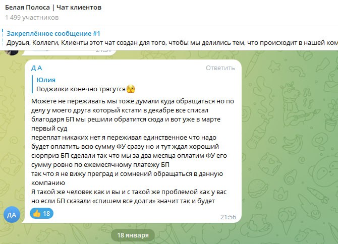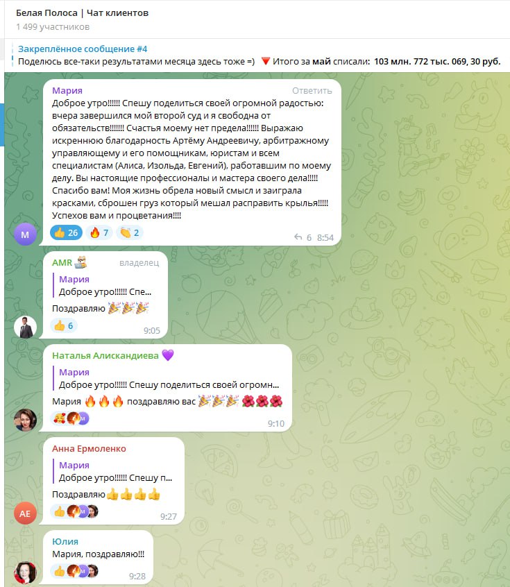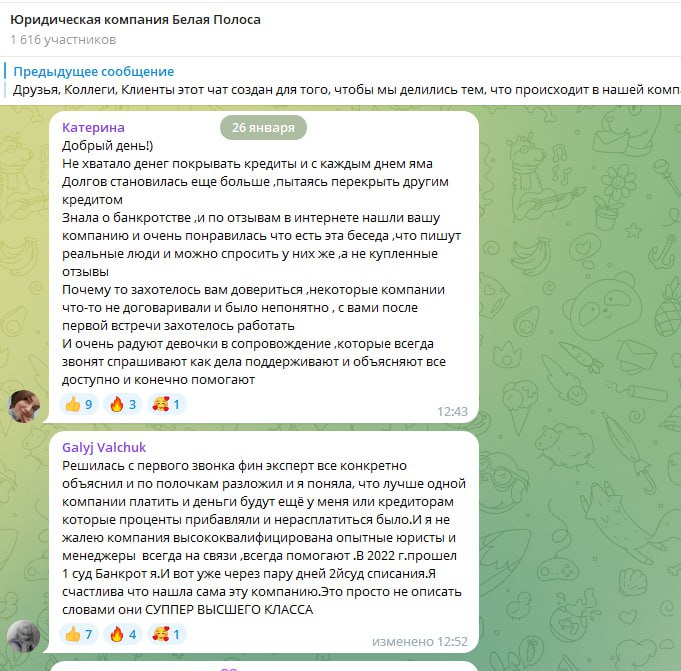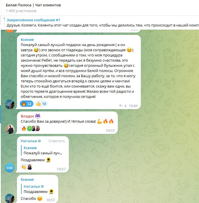 Отзывы наших клиентов в Telegram: